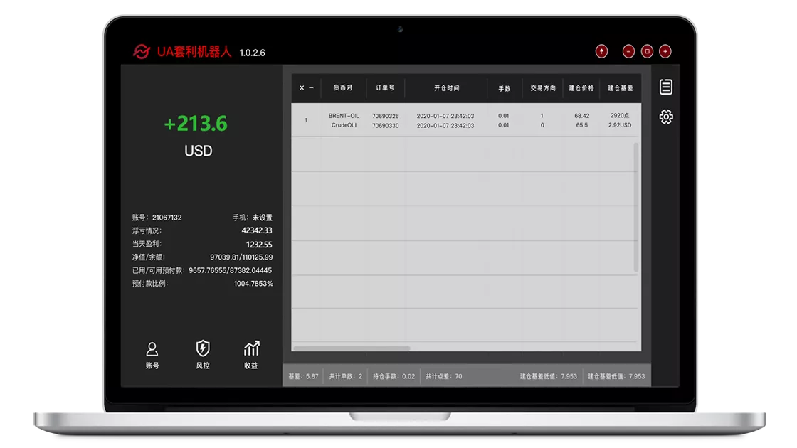 机器人同时对Brent和Crude两个原油品种进行对冲,通过云端服务器实时的行情大数据运算调整两者的基差,以应对时刻波动的行情。